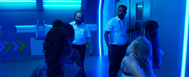 En un momento, las chicas son atrapadas por los guardias de seguridad después de irrumpir en un lugar de láser tag. Para salir de apuros, las chicas se ponen a bailar de forma sugerente.